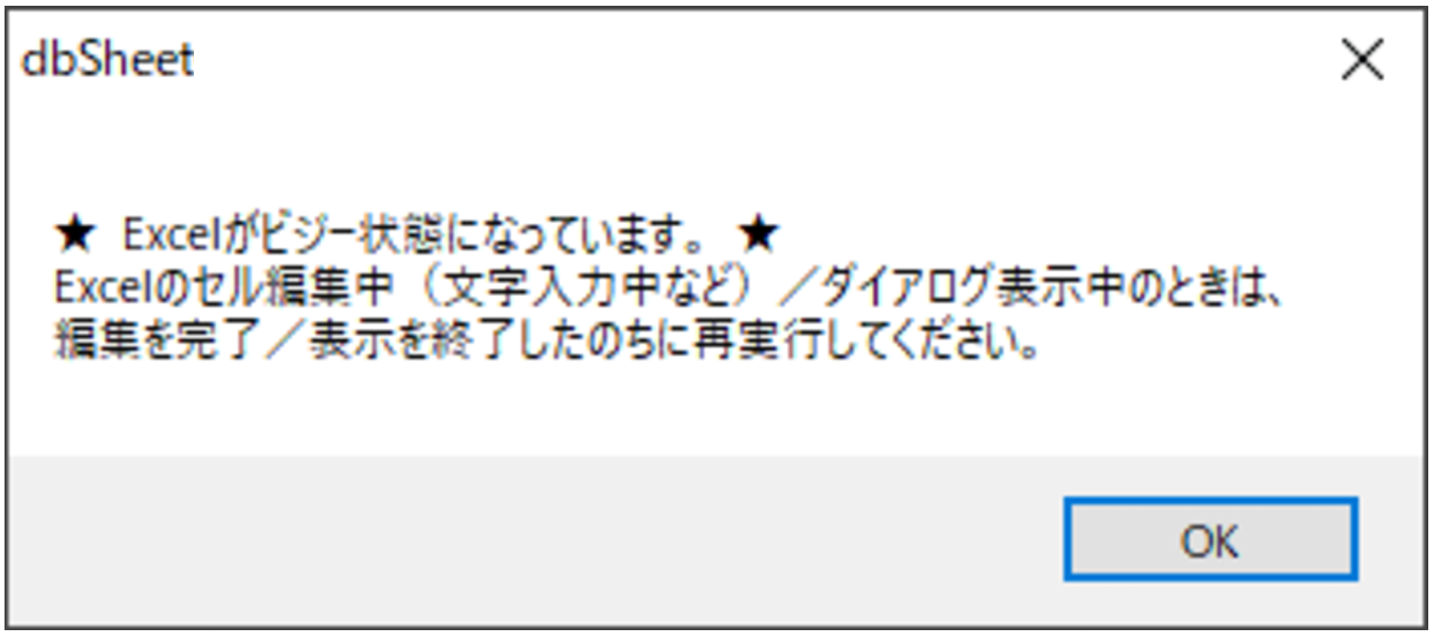 エラーメッセージ: ★ Excelがビジー状態になっています。 ★ |