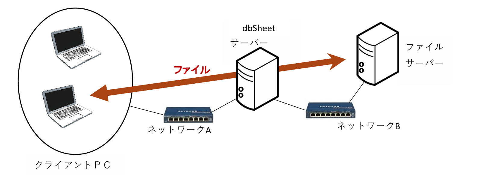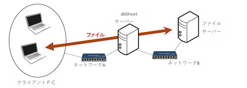 dbSheet サーバーからファイルサーバーの共有フォルダへアクセスし、