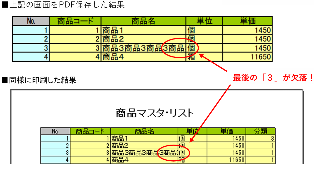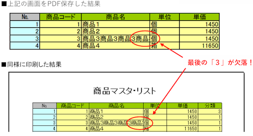 画面上では表示されている内容をPDF保存した時に、後ろの部分が切れることがあります。